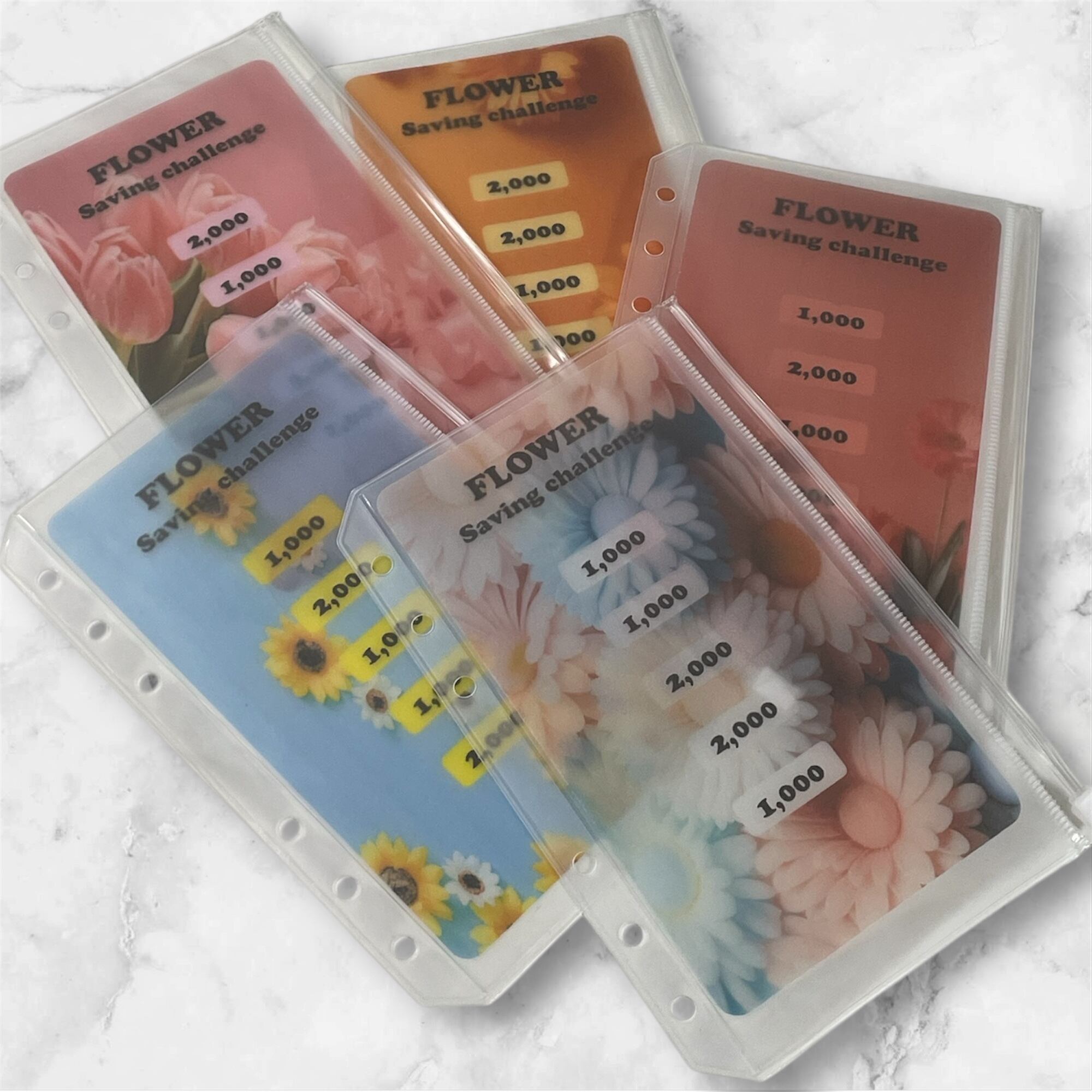 【Flower Savings】花柄 貯金リフィル A6 バインダー貯金