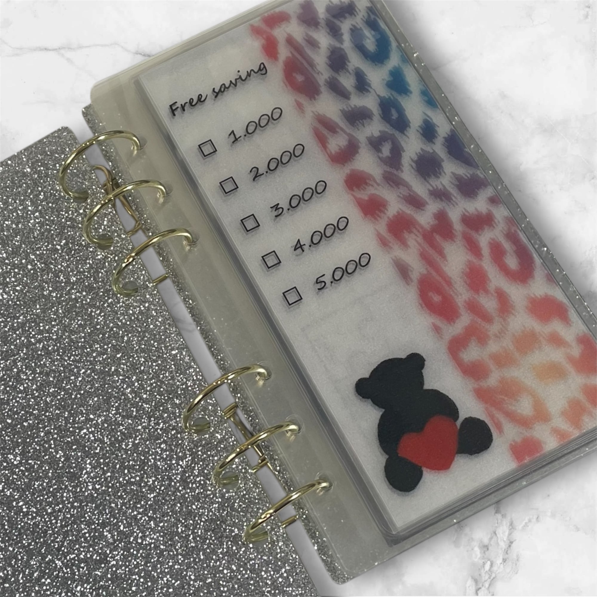 《 ヒョウ柄くま 》 Free saving リフィル貯金 バインダー貯金 A6